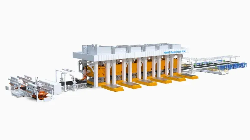 ⑤對(duì)中系統(tǒng):板料進(jìn)入首臺(tái)壓機(jī)前進(jìn)行對(duì)中,確保板料進(jìn)入壓機(jī)的位置一致性